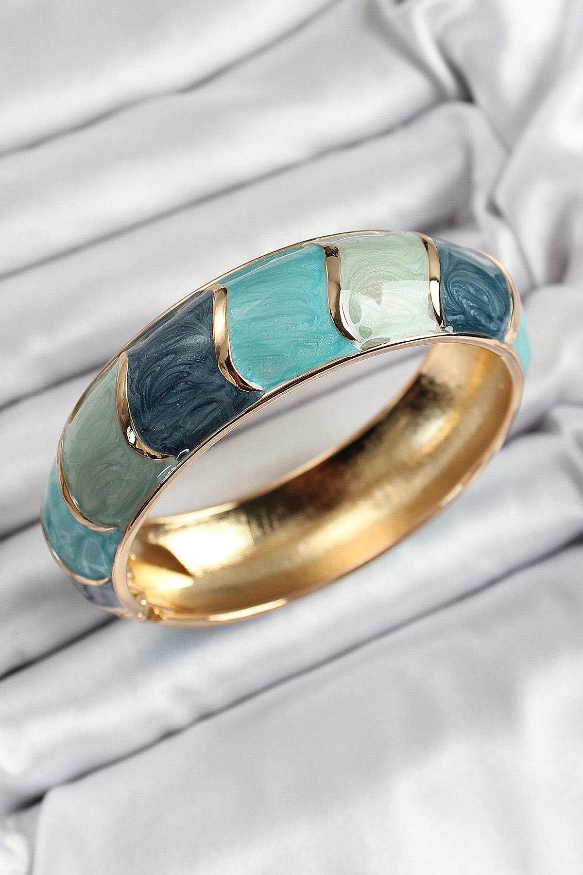 Mineli Pirinç Mavi Su Yeşili Renk Motif Desenli Kadın Kelepçe