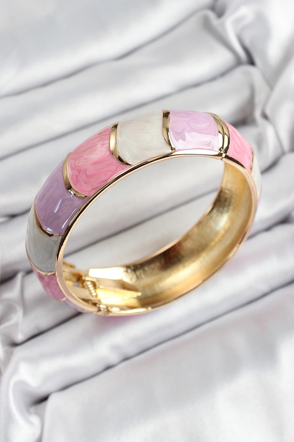 Mineli Pirinç Pembe Mor Beyaz Renk Motif Desenli Kadın Kelepçe