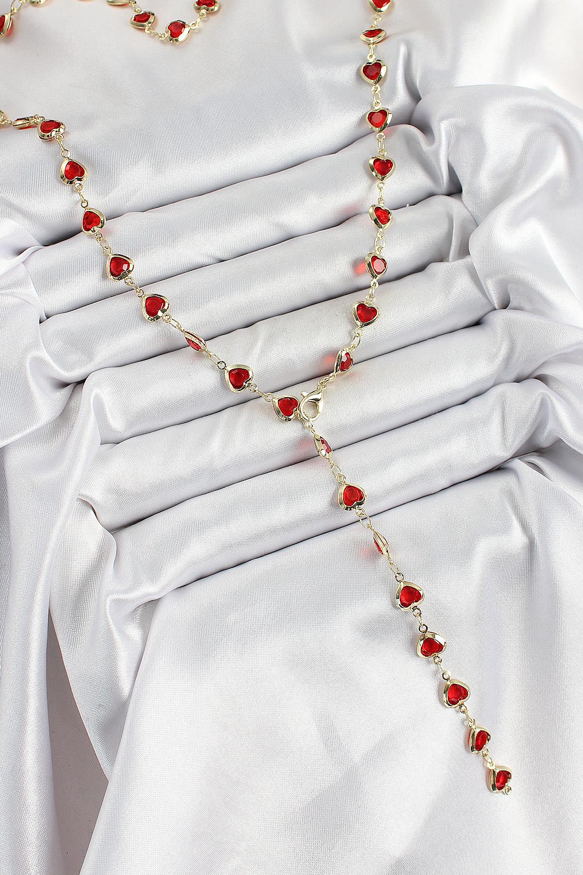 Pirinç Gold Renk Kırmızı Zirkon Taşlı Kalpli Y Kadın Kolye