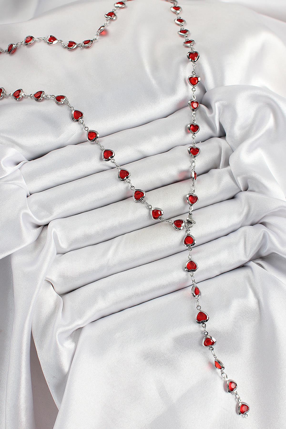 Pirinç Gümüş Renk Kırmızı Zirkon Taşlı Kalpli Y Kadın Kolye