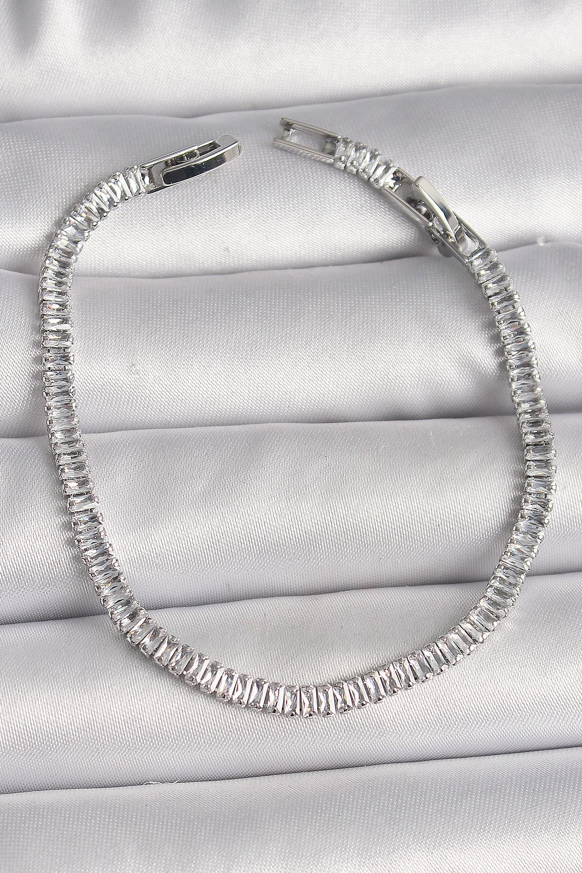 Pirinç Gümüş Renk Zirkon Taşlı Su Yolu Model Kadın Bileklik