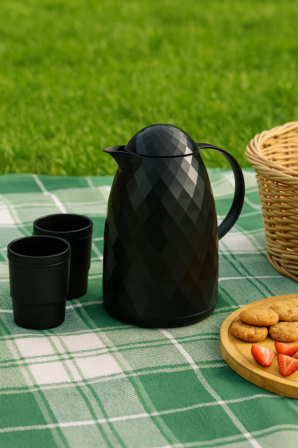 1 Lt Akrilik Siyah Çay Termosu 12 Saat Sıcak 24 Saat Soğuk