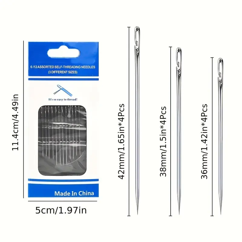 Kolay iplik geçirmeli iğneler yandan iplik geçirmek için tasarlanmıştır, kendinden geçirmeli tasarımı sayesinde iplik geçirme özelliği olmadan da kolayca geçirilebilir, görüşü zayıf veya el koordinasyonu zayıf olan insanlar için bile iğneden iplik geçirmek artık çok kolay.