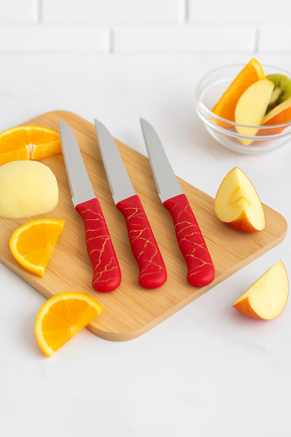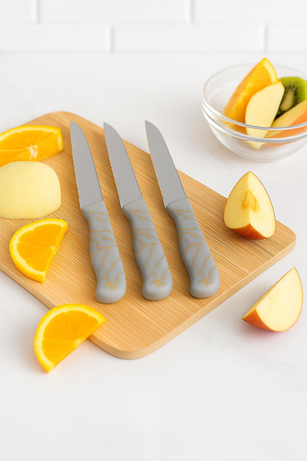 3’lü Paslanmaz Çelik Mermer Desenli Meyve Bıçak Seti