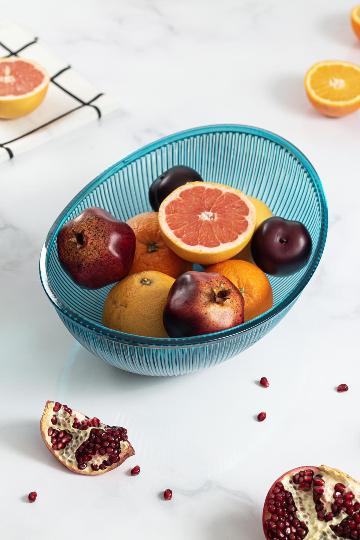 Akrilik Barok Aquamarin Büyük Oval Meyve & Salata Kasesi & Karıştırma Kabı / 3,3 Lt (CAM DEĞİLDİR)