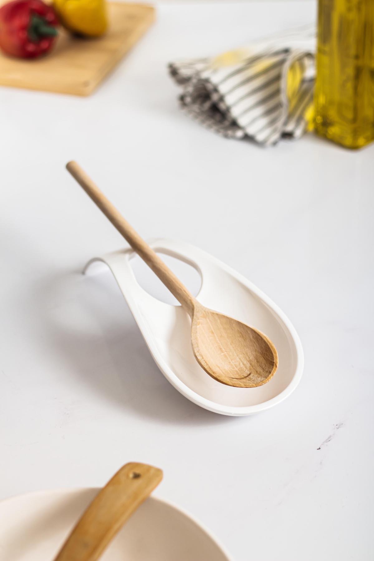 Akrilik Beyaz Tezgah Üstü Kirli Kaşıklık & Kepçe Altlığı