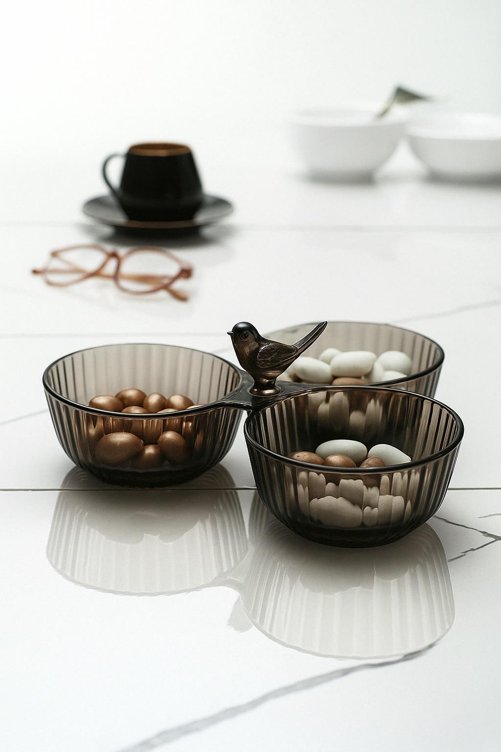 Akrilik Kuşlu Çerezlik Sunumluk Şekerlik Füme ( CAM & PORSELEN DEĞİLDİR )