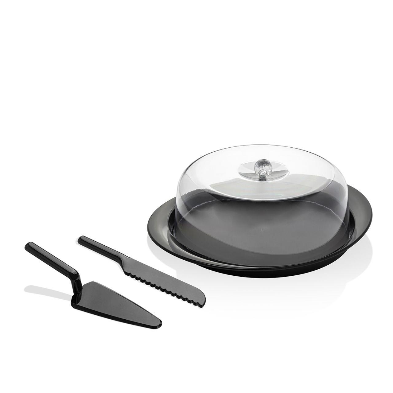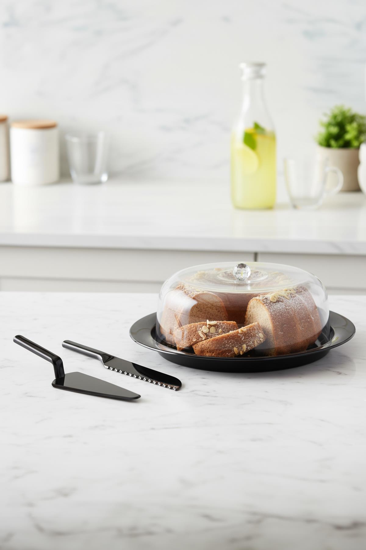 Akrilik Mat Siyah Kek Fanusu ve Servis Seti - 33 x 39 x 14 cm
