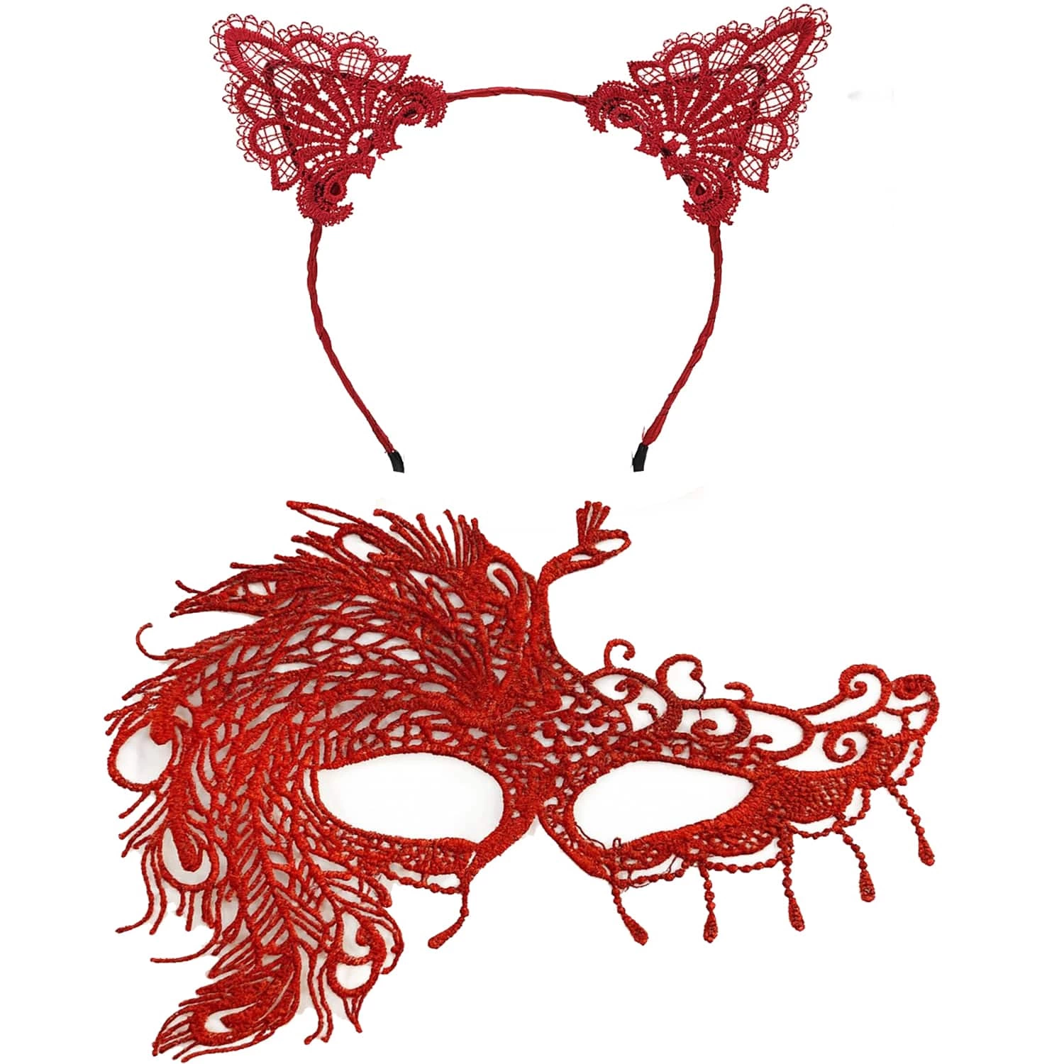 Alevin Zarafeti Kırmızı Dantel Maske Ve Taç Seti 4 No – Kadın Kostüm Tamamlayıcı