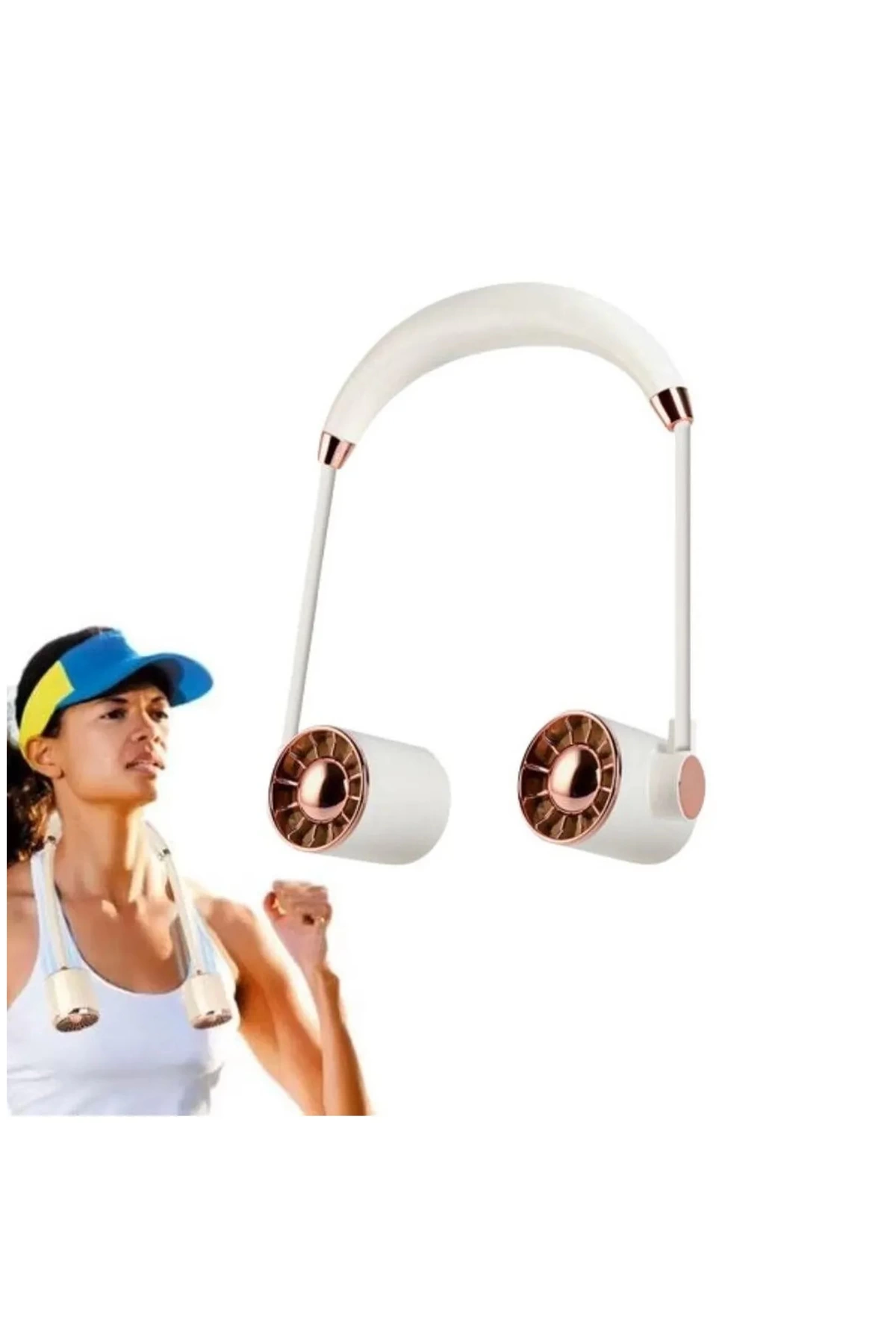 Boyunluk Fan Hava Soğutucu Vantilatör Boyuna Asmalı Şarjlı 3 Kademeli Mini Klima Beyaz