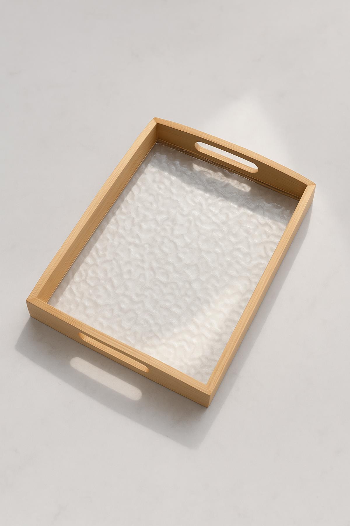 Doğal bambu ağacından üretilen bu büyük boy dikdörtgen tepsi, sağlam yapısı ve estetik görünümüyle sofralarınıza şıklık katar. Kahvaltı, çay ve ikramlık sunumları için ideal bir yardımcıdır.
