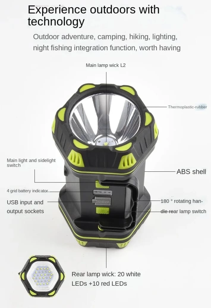 F-262 Yeni Güçlü Çift Taraflı Taşınabilir Spot Ve Işıldak Usb Powerbank Şarjlı Fener