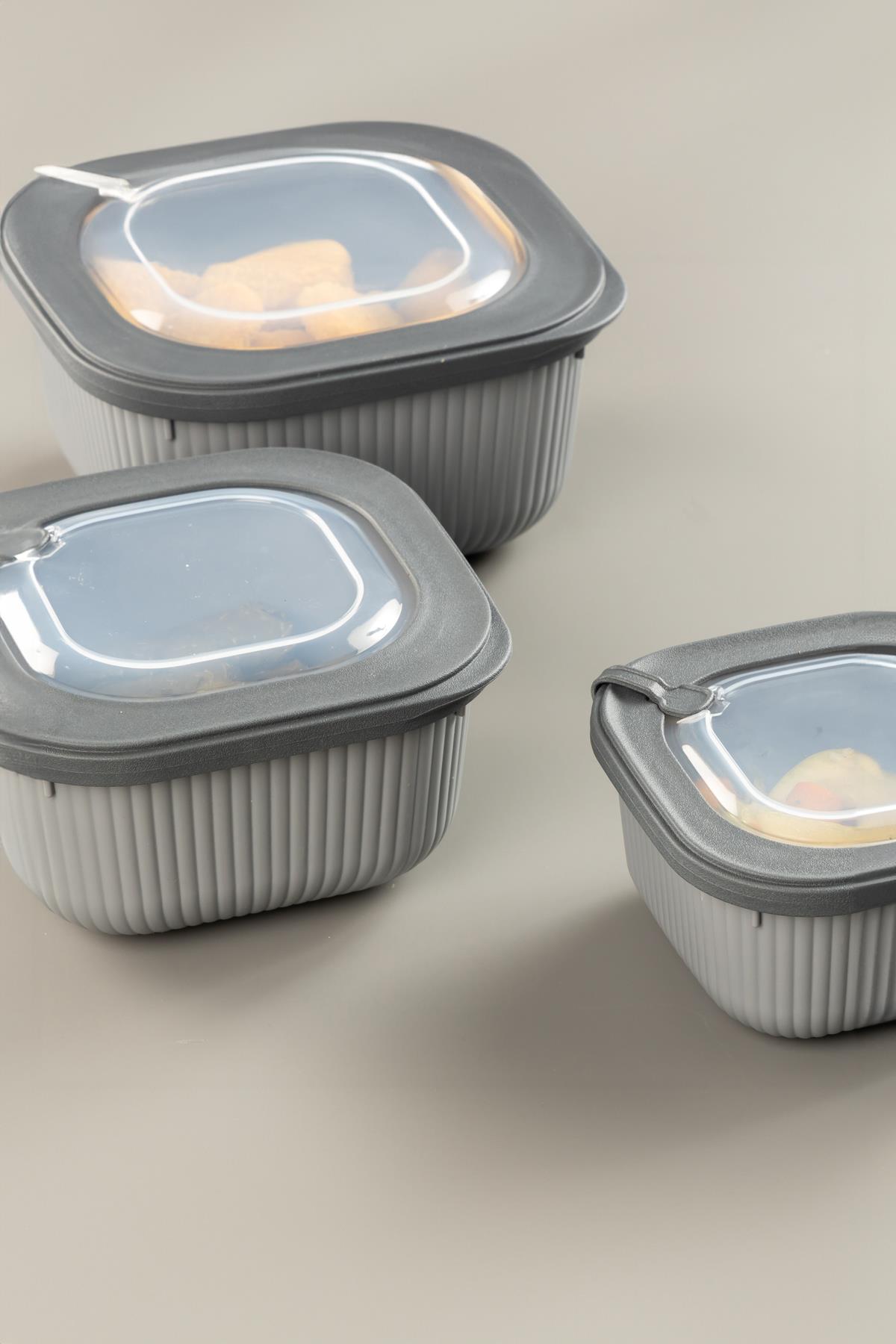 Kare 3 Parça Vakumlu Sızdırmaz Hava Almaz Saklama Kabı Seti Füme (1800/1100/600 Ml)