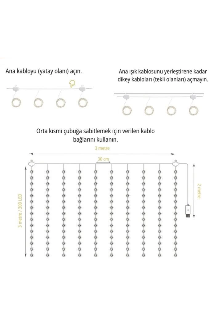 Peri Telli Perde Led 3 metre, Uzaktan Kumandalı, Usb"li,  Animasyonlu LW-7 300 Ledli 10 Sarkıt Perde Led Işık, 8 Modlu Uzaktan Kumandalı, 3x3 Metre Peri Telli LedFarklı çeşitleri bulunan perde led ışıkları doğum günü...