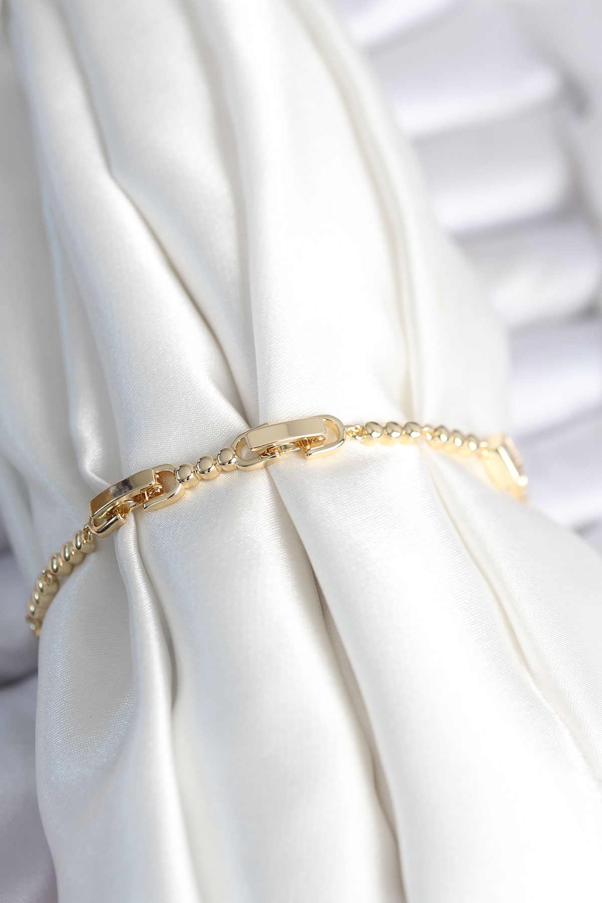 Pirinç Gold Renk Zirkon Taşlı Kalpli Model Kadın Bileklik