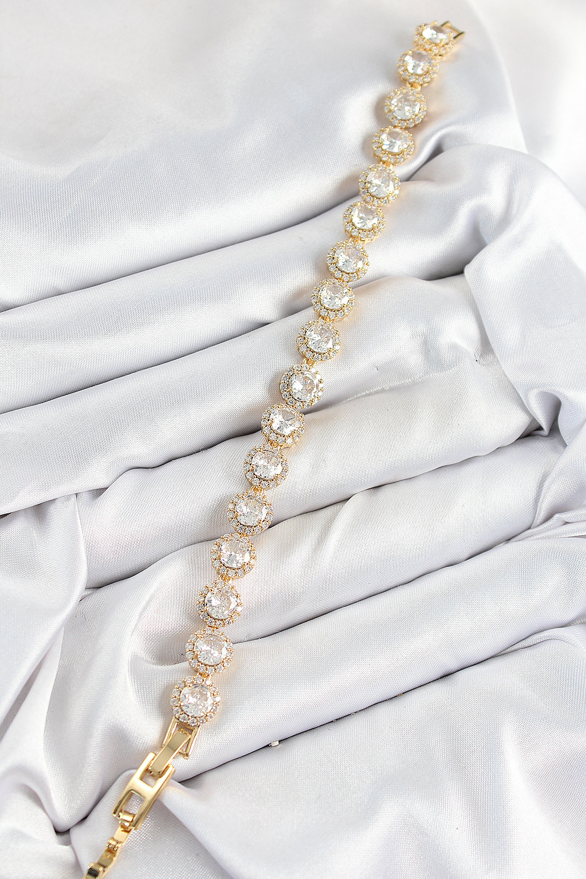 Pirinç Zirkon Taşlı Daire Baget Model Gold Renk VIP Seri Kadın Bileklik