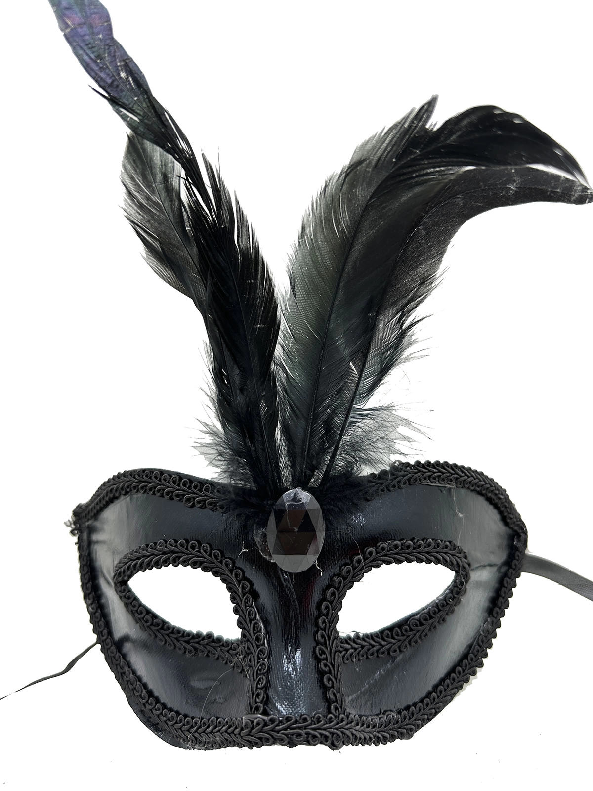 Balolar ve özel günler için mükemmel bir aksesuar olan Siyah Rugan Kaplama Siyah Tüylü Parti Maskesi ile göz kamaştırın
