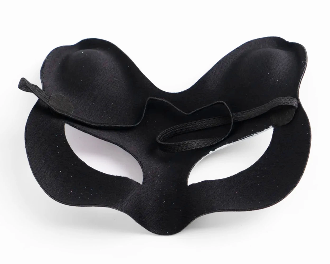Siyah Renk Süet Kaplama Üzeri Kırmızı Sarı Simli Kedi Maskesi 17x14 Cm