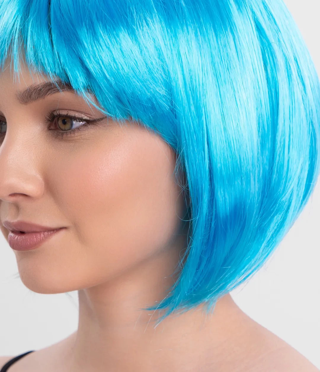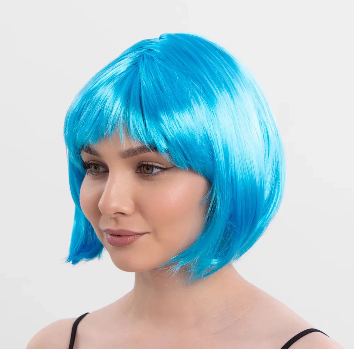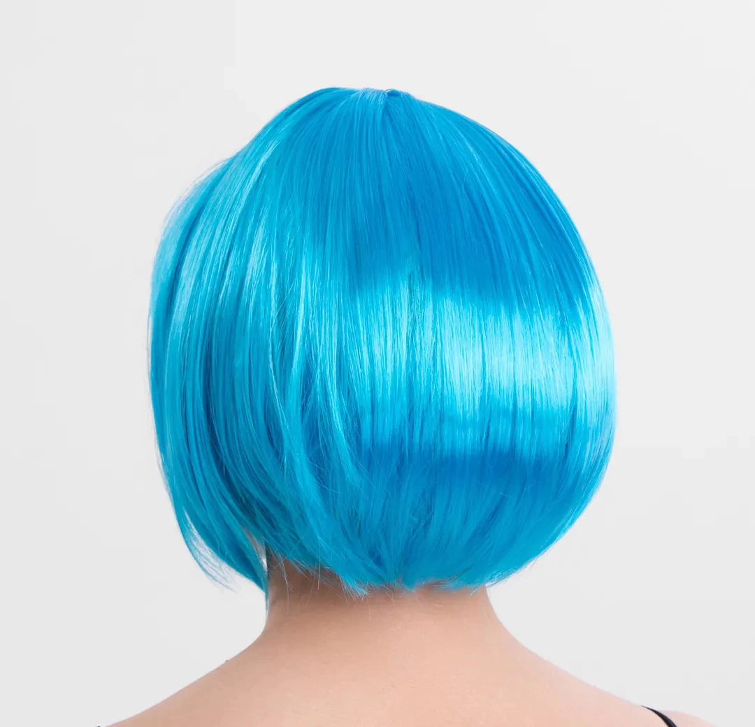 Turkuaz Açık Mavi Renk Düz Kesim Kısa Küt Parti Peruku &ndash Cesur ve Şık Bir Seçim