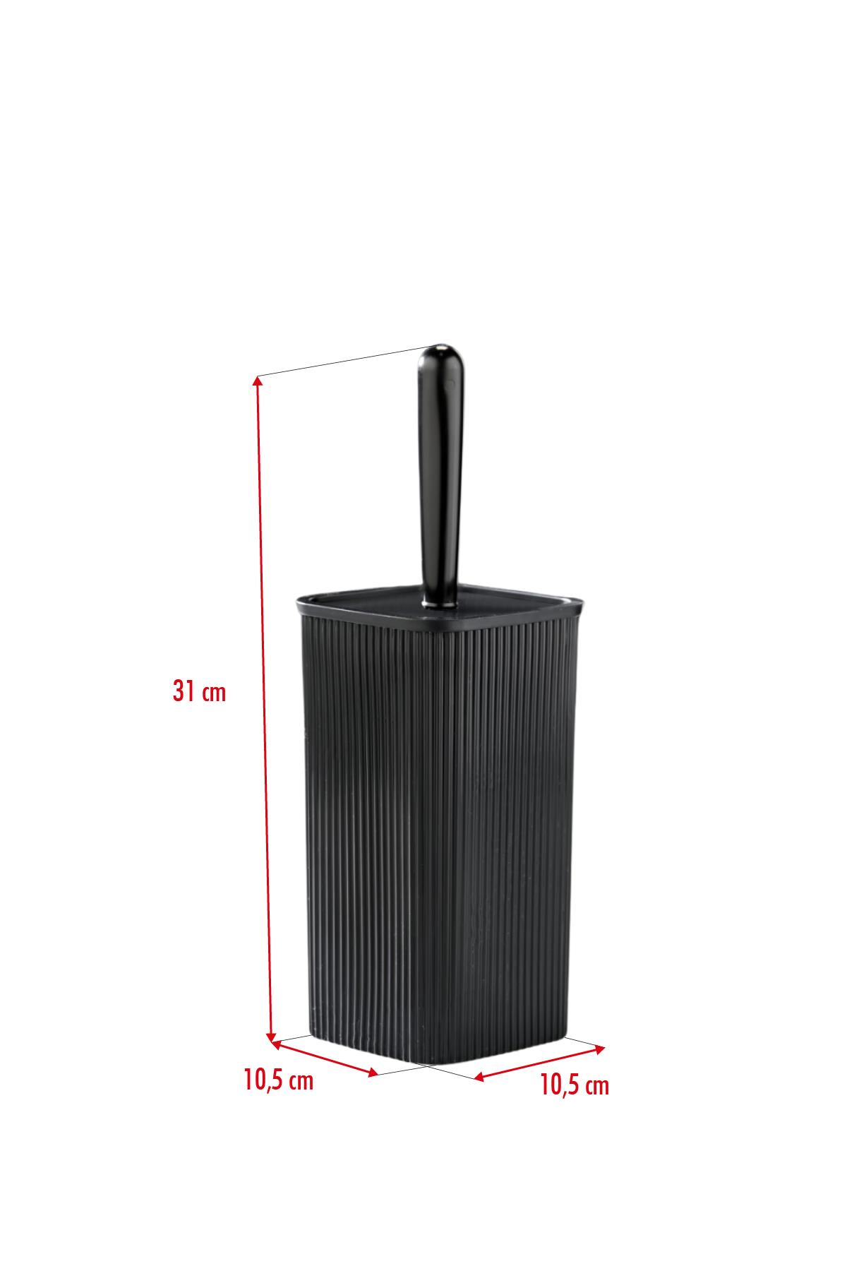 Ürün Hikayesi: Siyah rengin zarafetini yansıtan bu WC fırçası, modern banyolarda hem şıklık hem hijyen sunar. En: 10,5 cm Boy: 10,5 cm Yükseklik: 31 cm Parça Sayısı: 2 Parça Kullanım Alanları: Banyo, tuvalet Paketleme B...