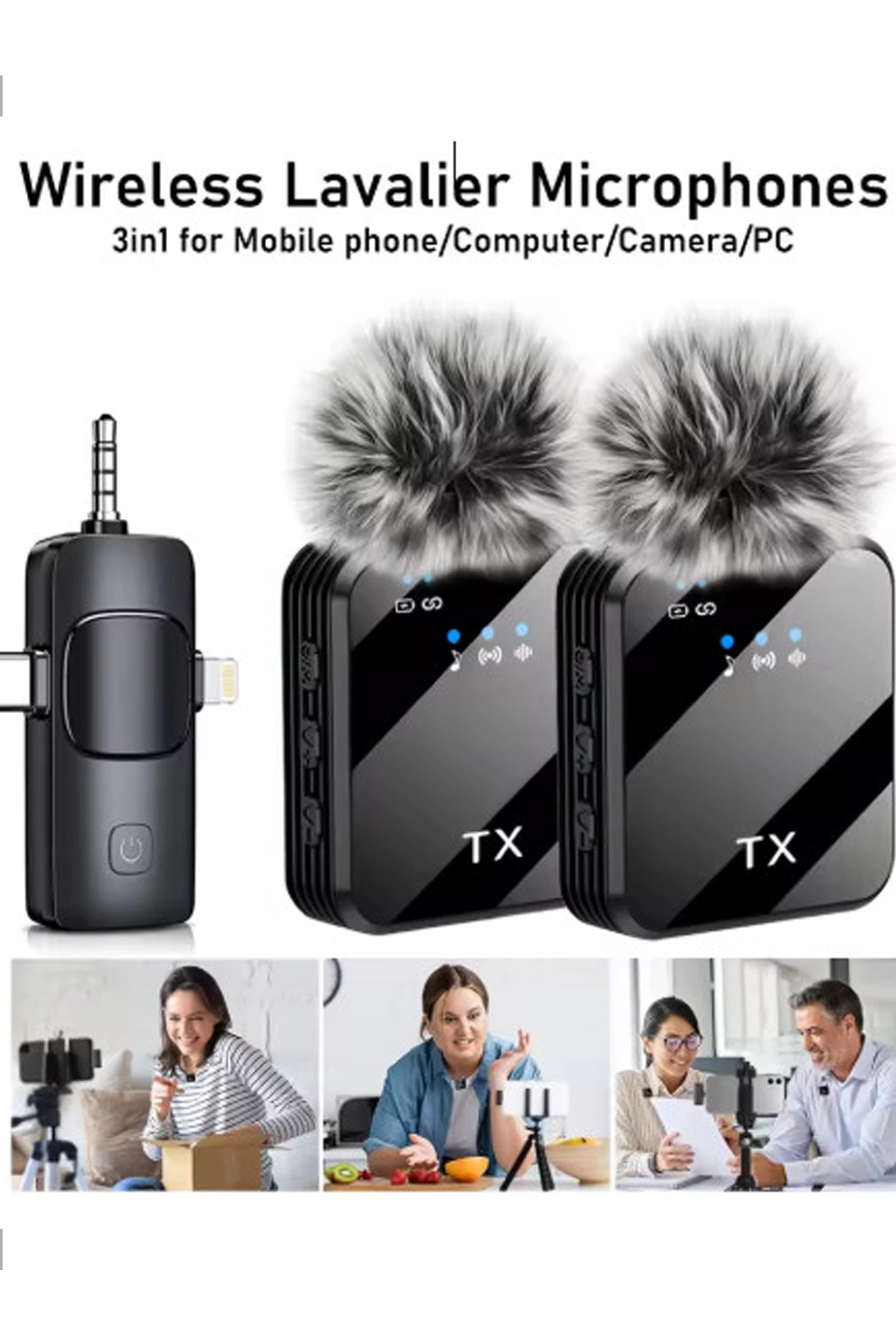 Yüksek Kalite Profesyonel 3 In 1 Kablosuz Taşınabilir Yaka Mikrofonu Tüylü